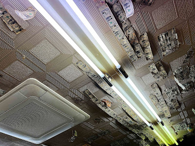 店主がいるカウンターにもドル札がいっぱい。